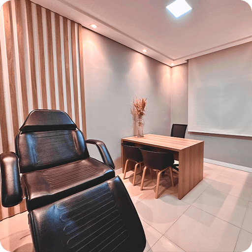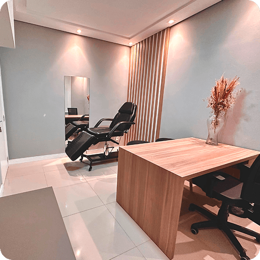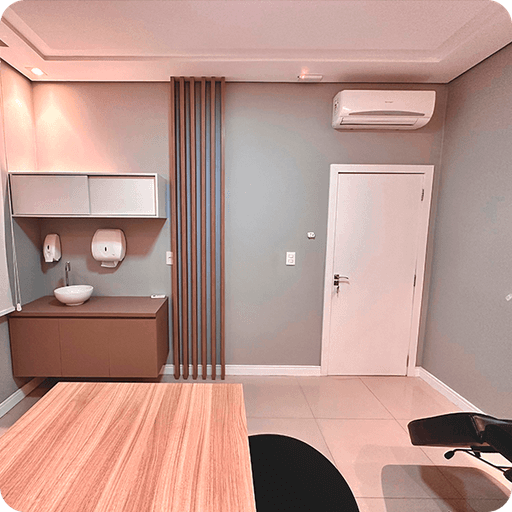 Com 10,90 m², este consultório foi cuidadosamente planejado para oferecer conforto, funcionalidade e sofisticação. O espaço conta com uma mesa ampla que facilita atendimentos, pia com armário integrado para maior praticidade e um espelho que agrega sofisticação. Equipado com uma maca hidráulica sofisticada, o consultório é ideal para ajustes ergonômicos durante atendimentos. A iluminação suave cria um ambiente relaxante, perfeito para massagens ou terapias manuais, enquanto o sistema de som controlável permite personalizar a experiência para seus clientes. Perfeito para profissionais como médicos, biomédicos, psicólogos, nutricionistas e fisioterapeutas que desejam unir excelência e bem-estar em suas consultas.